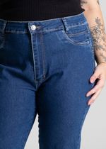 Calça plus size confeccionada em jeans. A modelagem cigarrete, sendo ajustado ao corpo até a altura do tornozelo. Cintura alta Fechamento com botão metálico e zíper Bolsos frontais falsos e bolsos traseiros funcionais Barra simples Modelagem: cigarrete Tecido: Jeans Tipo de lavagem: Azul Cor: Azul