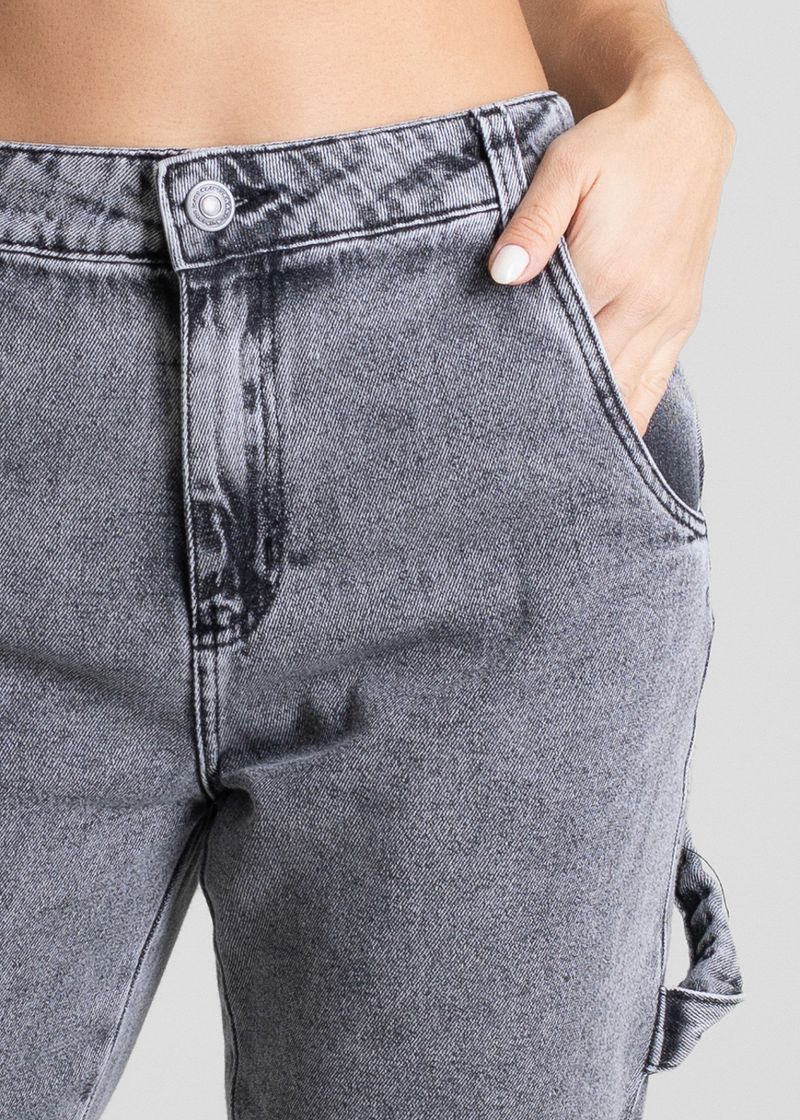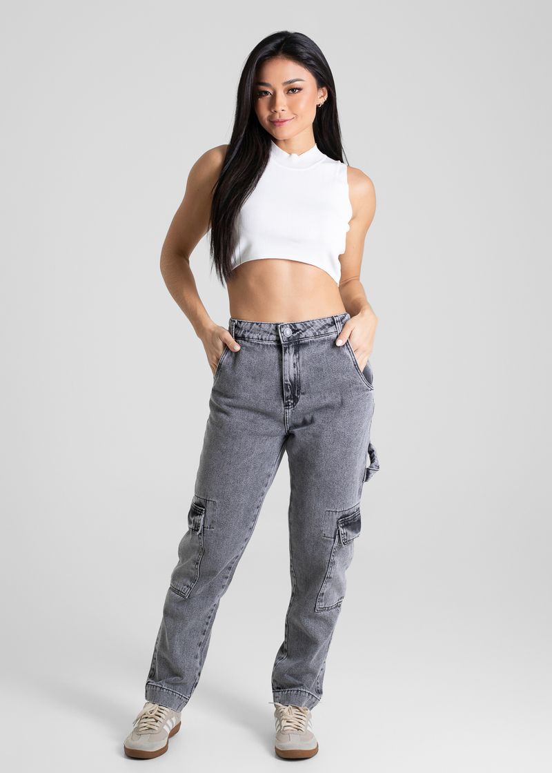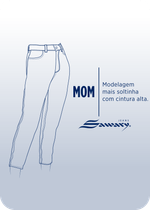 Calça mom confeccionada em jeans. A modelagem mom tem um caimento soltinho nos quadris e coxas ajustando até o tornozelo. Cintura alta Fechamento com botão e zíper Bolsos frontais e bolsos traseiros e bolsos laterais funcionais Barra simples Modelagem: Mom Tecido: Jeans Tipo de lavagem: Color Cor: Preto