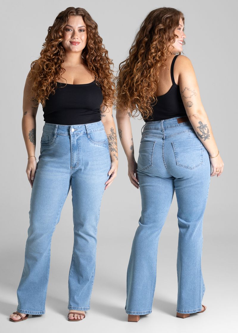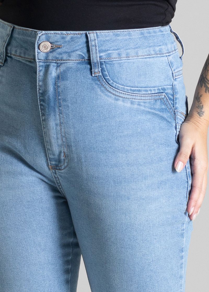 Calça feminina confeccionada em jeans. Modelo petit, especialmente desenvolvido para mulheres de até 1,65m de altura, com o comprimento ideal que dispensa ajustes ou barra. Cintura alta Fechamento através de um botão e zíper Bolsos frontais e posteriores funcionais Barra simples Tecido: Jeans Tipo de Lavagem: Azul Cor: Azul claro