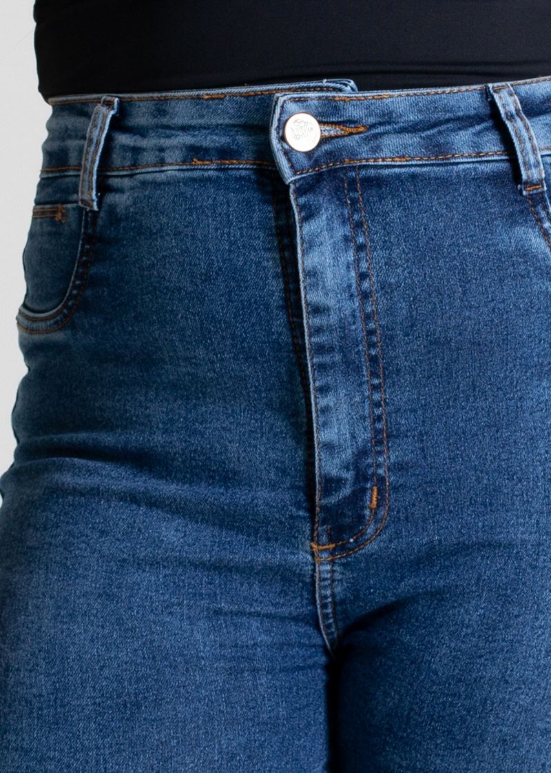 Calça push up plus size confeccionada em jeans. A modelagem tem tecnologia para dar um UP na silhueta. Cintura alta Fechamento com botão metálico e zíper Bolsos frontais falsos e bolsos traseiros funcionais Barra simples Modelagem: Plus size Tecido: Jeans Tipo de lavagem: Azul Cor: Azul medio