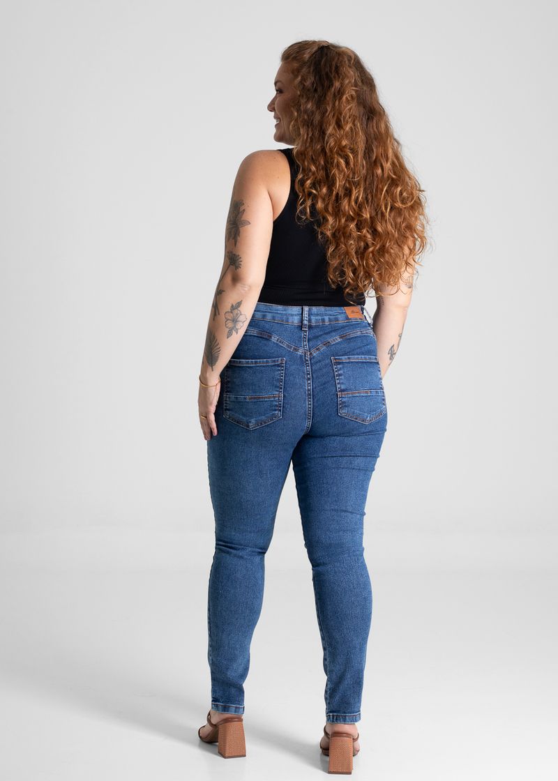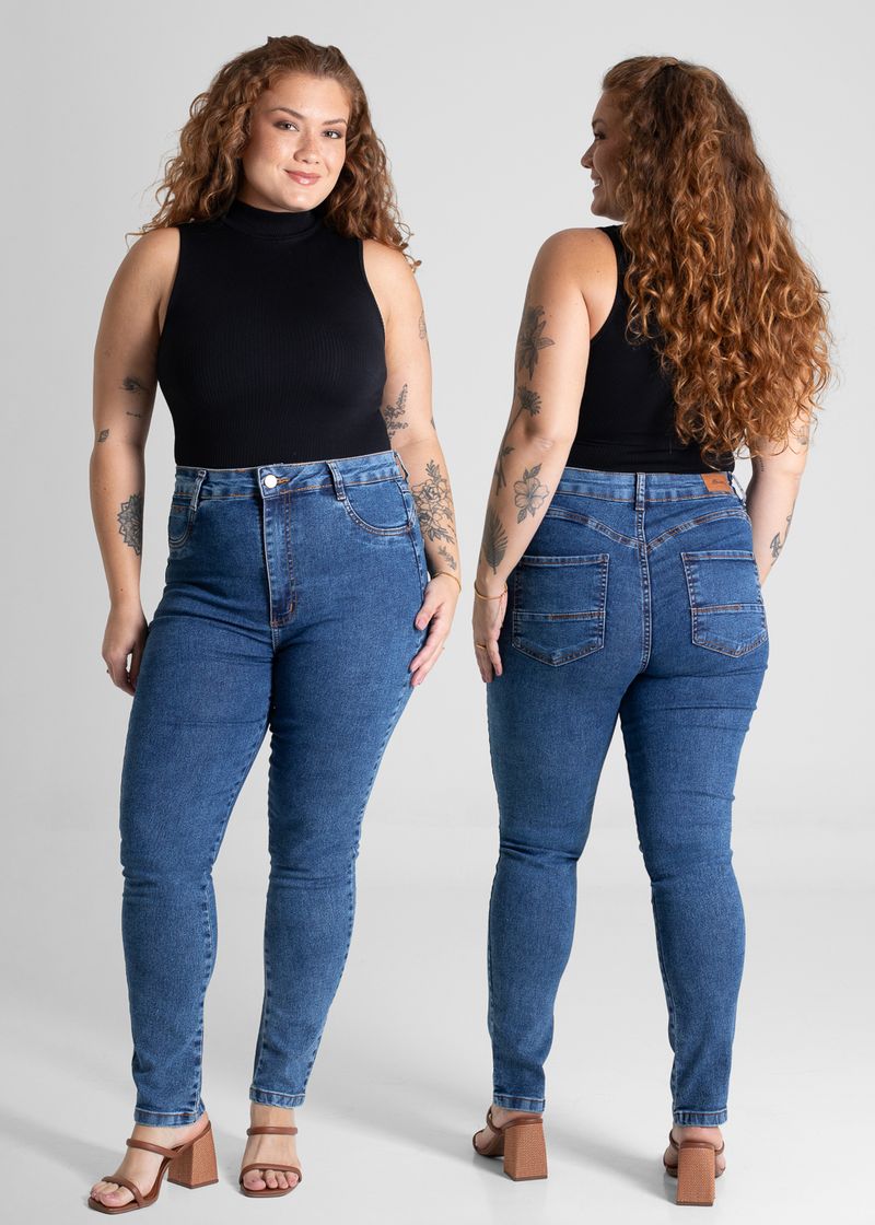 Calça push up plus size confeccionada em jeans. A modelagem tem tecnologia para dar um UP na silhueta. Cintura alta Fechamento com botão metálico e zíper Bolsos frontais falsos e bolsos traseiros funcionais Barra simples Modelagem: Plus size Tecido: Jeans Tipo de lavagem: Azul Cor: Azul medio