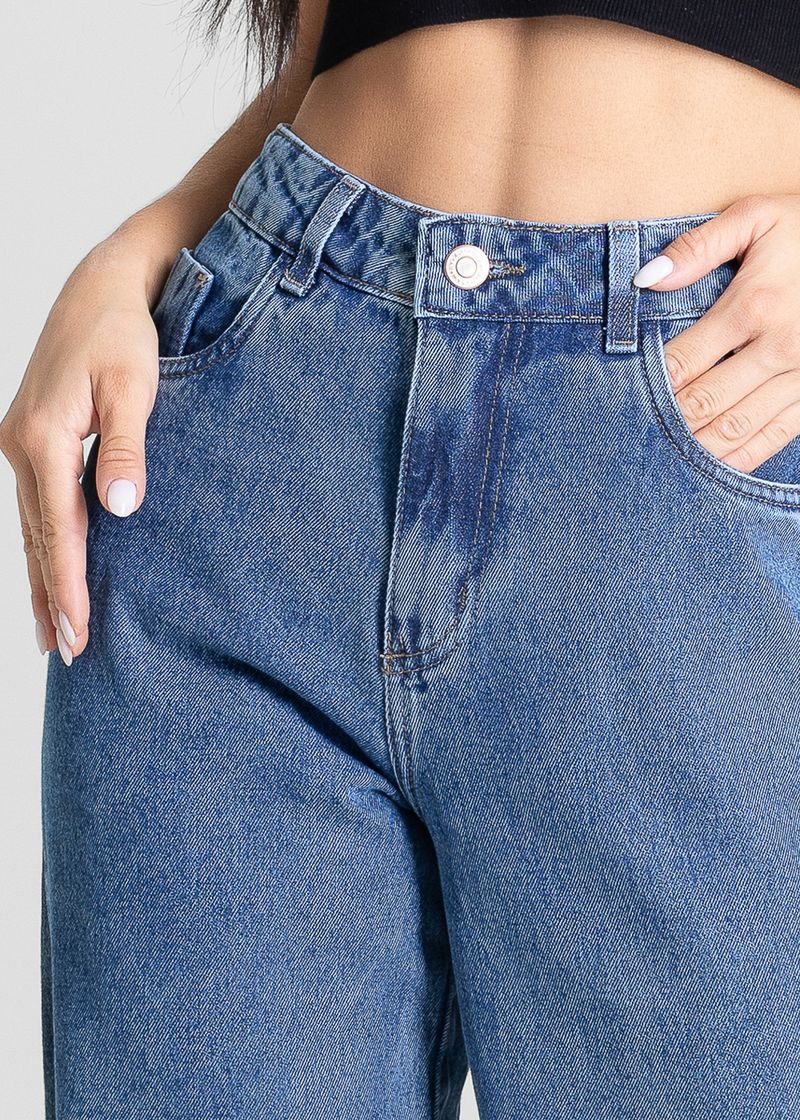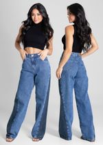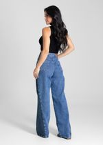 Calça feminina confeccionada em jeans. O modelo possui cintura super alta, gancho no lugar e caimento amplo da coxa até a barra. Cintura alta Fechamento através de um botão e zíper Bolsos frontais e posteriores funcionais Barra simples Tecido: Jeans Tipo de Lavagem: Azul Cor: Azul medio