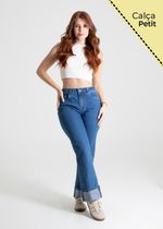 Calça feminina confeccionada em jeans. O modelo possui cintura super alta, gancho no lugar e caimento amplo da coxa até a barra. Cintura alta Fechamento através de um botão e zíper Bolsos frontais e posteriores funcionais Barra dobrada Tecido: Jeans Tipo de Lavagem: Azul Cor: Azul médio