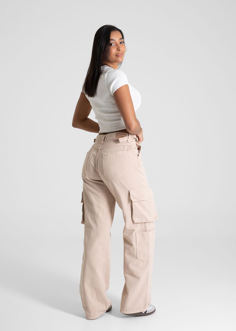 Calça feminina confeccionada em sarja. O modelo possui cintura super alta, gancho no lugar e caimento amplo da coxa até a barra. Cintura alta Fechamento através de um botão e zíper..cós acompanha tiras com o mesmo tecido Bolsos frontais e posteriores funcionais Barra simples Tecido: Sarja Tipo de Lavagem: Color Cor: bege