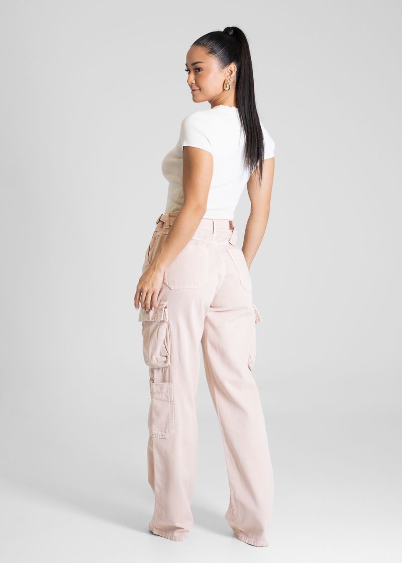 Calça feminina confeccionada em sarja. O modelo possui cintura super alta, gancho no lugar e caimento amplo da coxa até a barra. Cintura alta Fechamento através de um botão e zíper..cós acompanha tiras com o mesmo tecido Bolsos frontais e posteriores funcionais Barra simples Tecido: Sarja Tipo de Lavagem: Color Cor: Salmao