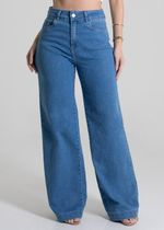 Calça feminina confeccionada em jeans. O modelo possui cintura super alta, gancho no lugar e caimento amplo da coxa até a barra. Cintura alta Fechamento através de um botão e zíper Bolsos frontais e posteriores funcionais Barra simples Tecido: Jeans Tipo de Lavagem: Azul Cor: Azul claro