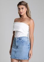 Saia mini feminina confeccionada em jeans O modelo tem comprimento curto e caimento ajustado. A parte frontal tem fechamento com botão e zíper Bolsos posterior funcional A barra tem acabamento simples Tecido: Jeans Tipo de lavagem: Azul Cor: Azul médio