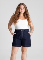 Shorts plus size confeccionado em jeans. Modelagem moderna e confortável para todas as ocasiões. Cintura alta Fechamento com botão metálico e zíper Bolsos frontais e bolsos traseiros funcionais Barra simples Modelagem: Plus size Tecido: jeans Tipo de lavagem: azul Cor: azul medio